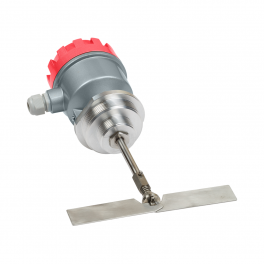 Лопасть датчика приводится в действие двигателем, при контакте вращающейся лопасти с контролируемым продуктом двигатель останавливается. Возникший реактивный момент приводит в действие микровыключатель, который формирует выходной сигнал (регистрируется достижение контролируемого уровня продукта). При снижении уровня продукта и освобождении лопасти двигатель возвращается в исходное положение пружиной и снова включается.
