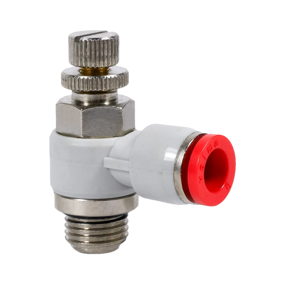 SC-BL-06-M5-EC Фитинг угловой с регулировкой расхода (пневмодроссель), 6мм x M5